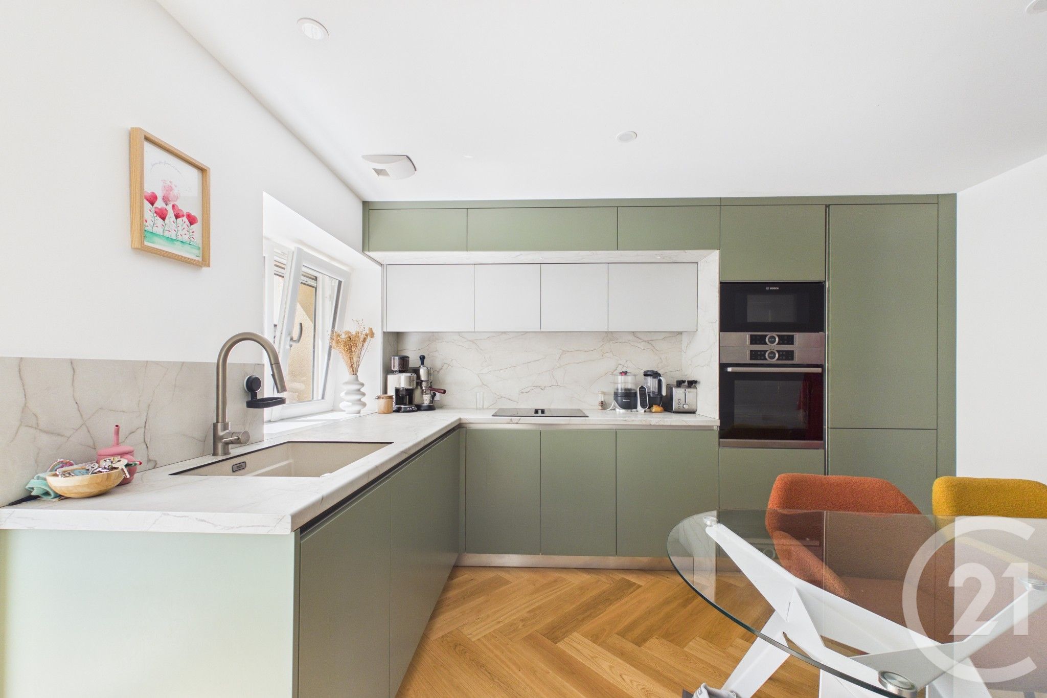 Une cuisine aménagée et équipée, fonctionnelle et élégante, pensée pour le quotidien.